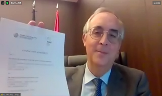 2021年7月8日,中國國際經(jīng)濟貿(mào)易仲裁委員會(CIETAC)與西班牙馬德里國際仲裁中心(MIAC)通過線上方式舉行了《合作協(xié)議》簽署儀式。貿(mào)仲副主任兼秘書長王承杰先生與馬德里國際仲裁中心主席José Antonio Caínzos先生分別代表雙方在《合作協(xié)議》上簽字。馬德里國際仲裁中心秘書長及馬德里律師協(xié)會國際關系負責人一同出席了本次儀式。