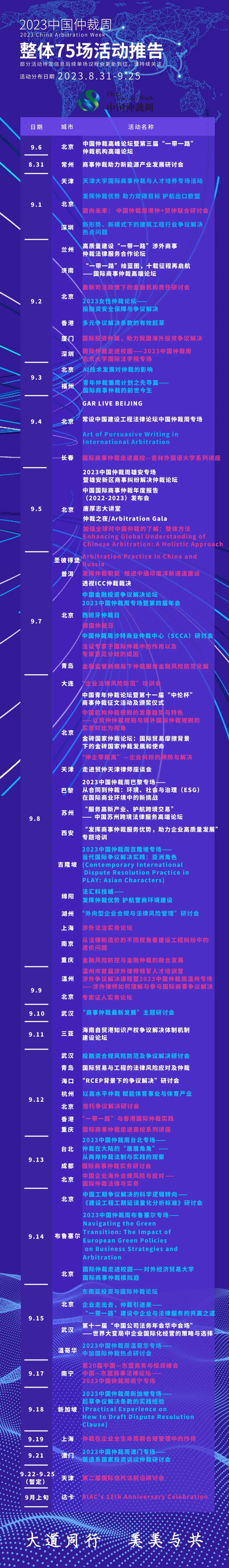 清風(fēng)生,白云遏,臨川筆,彭澤樽。截至今日2023中國仲裁周整體75場活動(dòng)逐場推告如下: