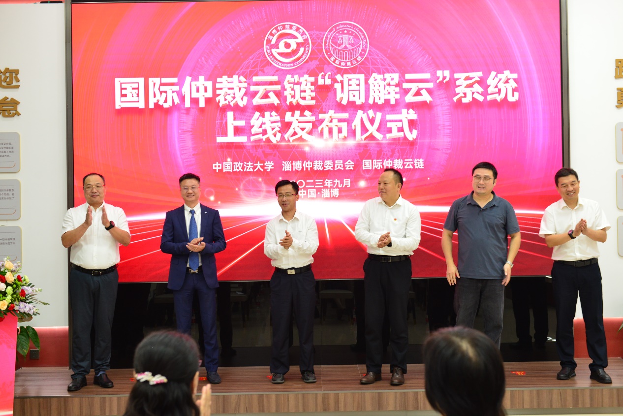 山東省司法廳一級(jí)調(diào)研員李世敏,淄博仲裁辦黨組書(shū)記、主任張公博,淄博仲裁辦黨組成員、副主任閆世學(xué),中國(guó)政法大學(xué)副教授、國(guó)際仲裁云鏈理事會(huì)副理事長(zhǎng)周蔚,中國(guó)政法大學(xué)網(wǎng)絡(luò)安全和信息化辦公室副主任張軼舸,泰杭律師事務(wù)所主任、國(guó)際仲裁云鏈理事會(huì)理事汪政共同為調(diào)解云系統(tǒng)上線揭牌。