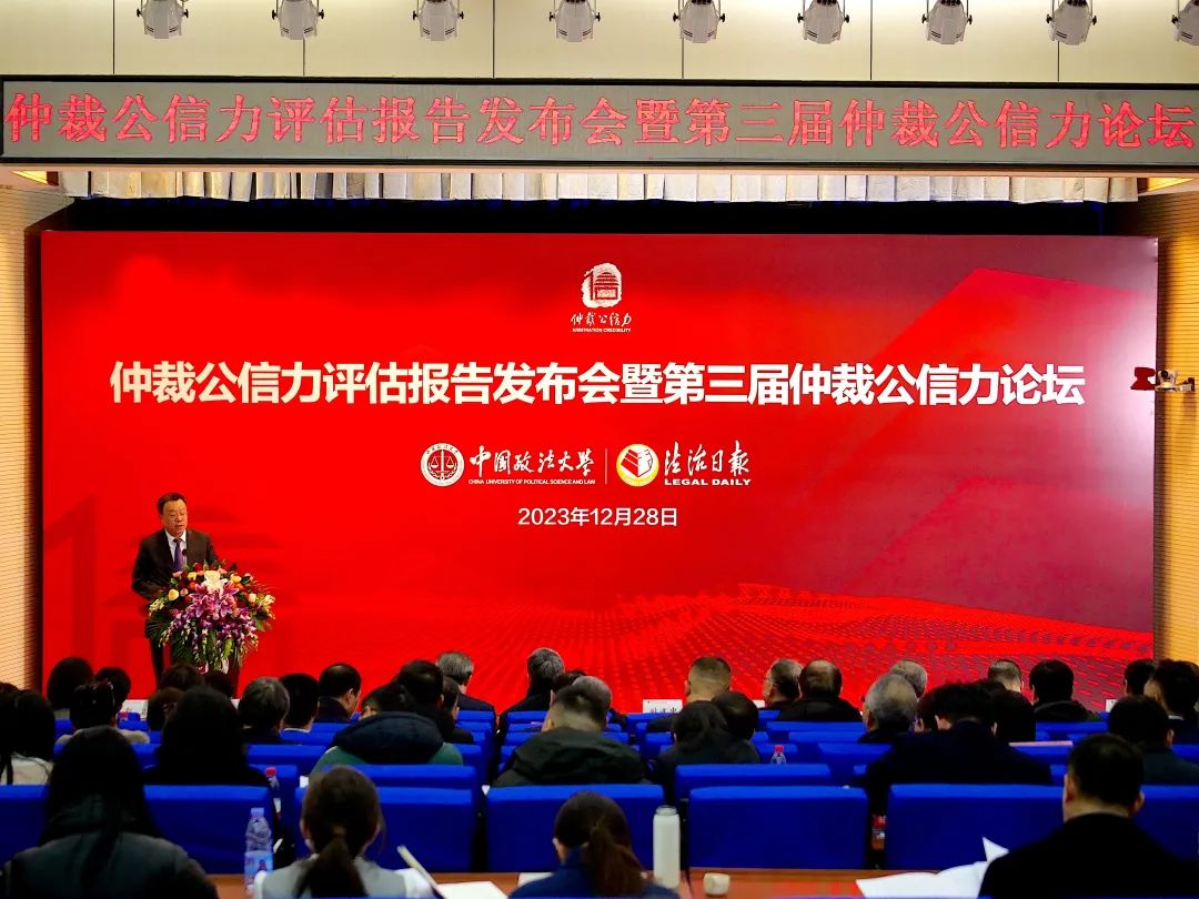 楊向斌在開(kāi)幕致辭中表示,仲裁公信力論壇讓仲裁界人士共聚一堂,共商公信力這一仲裁工作的永恒主題,見(jiàn)證中國(guó)仲裁公信力建設(shè)成果,共同促進(jìn)仲裁高質(zhì)量發(fā)展。黨的十八大以來(lái),據(jù)初步統(tǒng)計(jì),全國(guó)仲裁案件數(shù)量增長(zhǎng)了將近4倍,仲裁標(biāo)的額增長(zhǎng)將近6.5倍,當(dāng)事人涉及全球的100多個(gè)國(guó)家和地區(qū),解決糾紛的類(lèi)型涵蓋了金融、建設(shè)工程、買(mǎi)賣(mài)合同、知識(shí)產(chǎn)權(quán)、數(shù)字經(jīng)濟(jì)等眾多領(lǐng)域,為國(guó)際經(jīng)貿(mào)往來(lái)提供了優(yōu)質(zhì)、高效、專(zhuān)業(yè)的法律服務(wù)和保障。中國(guó)仲裁的國(guó)際影響力、競(jìng)爭(zhēng)力持續(xù)提升,我國(guó)已經(jīng)成為適用仲裁方式處理商事?tīng)?zhēng)議最多的國(guó)家之一。公信力是仲裁的生命,一定程度上決定著仲裁事業(yè)的生存和發(fā)展,提高仲裁公信力對(duì)于我國(guó)仲裁事業(yè)的健康發(fā)展至關(guān)重要。為此,黨的十八屆四中全會(huì)提出了“完善仲裁制度、提高仲裁公信力”的改革任務(wù)。2018年,中共中央辦公廳、國(guó)務(wù)院辦公廳聯(lián)合印發(fā)《關(guān)于完善仲裁制度提高仲裁公信力的若干意見(jiàn)》(以下簡(jiǎn)稱(chēng)“《兩辦意見(jiàn)》”),對(duì)于完善仲裁制度、提高仲裁公信力做出了全面部署,其中明確提出,要研究探索建立仲裁委員會(huì)第三方評(píng)估制度,逐步形成符合仲裁特點(diǎn)的第三方評(píng)估指標(biāo)體系。自2015年以來(lái),仲裁公信力評(píng)估的開(kāi)展是對(duì)仲裁社會(huì)監(jiān)督的積極實(shí)踐和有益探索,法大仲裁研究院的仲裁公信力評(píng)估,大致走了將近十年,這是第三屆,得到了各方面的廣泛認(rèn)可,公信力評(píng)估也在這個(gè)過(guò)程中積累了自己的公信力,逐漸獲得了公信力第三方評(píng)估的良好口碑。相信隨著評(píng)估的探索、實(shí)踐的不斷深入,公信力評(píng)估必將在推動(dòng)我們國(guó)家仲裁公信力建設(shè)和新時(shí)代仲裁事業(yè)發(fā)展上發(fā)揮越來(lái)越重要的作用。國(guó)內(nèi)仲裁是以公信力為重要的抓手,國(guó)際仲裁是以競(jìng)爭(zhēng)力為重要的目標(biāo)。希望大家以正在修訂的仲裁法為契機(jī),緊緊圍繞提高仲裁公信力和國(guó)際競(jìng)爭(zhēng)力兩大目標(biāo)銳意改革,不斷探索,與在座的各位同仁和仲裁界的朋友一道創(chuàng)新人才培養(yǎng)機(jī)制,建設(shè)國(guó)際一流仲裁機(jī)構(gòu),提升仲裁整體實(shí)力,共同推進(jìn)中國(guó)仲裁事業(yè)的高質(zhì)量發(fā)展。希望以中國(guó)政法大學(xué)為代表的高等科研機(jī)構(gòu),圍繞一流仲裁機(jī)構(gòu)的建設(shè),推動(dòng)仲裁理論與實(shí)務(wù)緊密結(jié)合和協(xié)同創(chuàng)新,為我國(guó)仲裁制度完善和仲裁機(jī)構(gòu)的改革創(chuàng)新,提供更多的智力支持。同時(shí)也希望仲裁行業(yè)、仲裁機(jī)構(gòu)、所有仲裁研究者,總結(jié)行業(yè)的經(jīng)驗(yàn),凝聚合力,進(jìn)一步做好做強(qiáng)中國(guó)自己的仲裁公信力評(píng)估,在評(píng)估的對(duì)象、內(nèi)容、結(jié)果應(yīng)用等方面精耕細(xì)作,進(jìn)一步探索開(kāi)展仲裁員評(píng)估、仲裁案件評(píng)估、仲裁機(jī)構(gòu)評(píng)估等各個(gè)項(xiàng)目,逐步建立起仲裁綜合性評(píng)估體系,打造立足中國(guó)面向世界的仲裁公信力評(píng)估品牌,不斷提升中國(guó)仲裁世界影響力,促進(jìn)中國(guó)仲裁的高質(zhì)量發(fā)展。