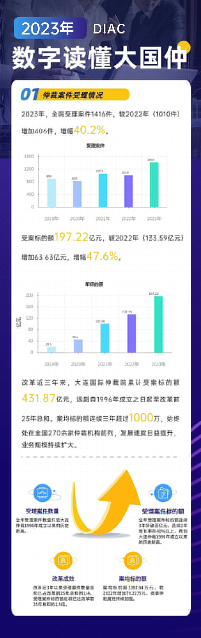 2023年,是大連國際仲裁院(大連仲裁委員會)順利完成體制機制改革的第三個年頭。大連國際仲裁院堅定不移在法治軌道上推進大連仲裁發(fā)展體系和能力現(xiàn)代化。全年仲裁業(yè)務(wù)實現(xiàn)跨越式發(fā)展,辦案質(zhì)效全面提升,公共法律服務(wù)平臺的輻射面持續(xù)擴大,機構(gòu)品牌的影響力和公信力不斷增強。在推進東北亞國際仲裁中心建設(shè),營造優(yōu)質(zhì)的法治化營商環(huán)境,擦亮“大連仲裁”的金字招牌上邁出堅實步伐。