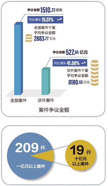 依法公平公正處理當(dāng)事人爭(zhēng)議,是貿(mào)仲委業(yè)務(wù)發(fā)展的重要基礎(chǔ)?!秷?bào)告》顯示,2023年貿(mào)仲委仲裁案件量質(zhì)齊升,新受理案件5237件,同比增長(zhǎng)28.17%,爭(zhēng)議金額人民幣1510.23億元(以下幣種均為人民幣),同比增長(zhǎng)19.01%,連續(xù)六年破千億元大關(guān),個(gè)案平均爭(zhēng)議金額2883.77萬(wàn)元,案件數(shù)量和標(biāo)的額均創(chuàng)歷史新高。案件國(guó)際化程度持續(xù)提升。案件涉及88個(gè)國(guó)家和地區(qū),當(dāng)事人來(lái)自71個(gè)國(guó)家和地區(qū)。雙方均為境外當(dāng)事人的國(guó)際案件62件。2023年首次實(shí)現(xiàn)“一帶一路”案件國(guó)別基本全覆蓋。案件程序復(fù)雜多樣。涉及多方當(dāng)事人案件1072宗,占總受案量20.5%;涉及多份合同案件906宗,占總受案量17.3%;涉及追加當(dāng)事人程序案件65件,合并仲裁案件64件。審理方式靈活高效。貿(mào)仲委仲裁庭結(jié)合案情采用大陸法系、英美法系方式審理案件,結(jié)合具體案件情形,靈活采用不同審理方式,依法保證仲裁程序公平正當(dāng),及時(shí)維護(hù)當(dāng)事人合法權(quán)益。案件爭(zhēng)議類型新穎多元。針對(duì)出現(xiàn)的新類型爭(zhēng)議,進(jìn)一步規(guī)范案件分類管理,其中建設(shè)工程、知識(shí)產(chǎn)權(quán)、金融等熱點(diǎn)領(lǐng)域案件增幅明顯。值得注意的是,新類型案件還呈現(xiàn)出新型金融爭(zhēng)議復(fù)雜疑難、案件數(shù)量持續(xù)增長(zhǎng),能源類案件保持增長(zhǎng)態(tài)勢(shì),知識(shí)產(chǎn)權(quán)類案件比重增加,ESG等新興領(lǐng)域糾紛進(jìn)入視野等諸多特點(diǎn)。