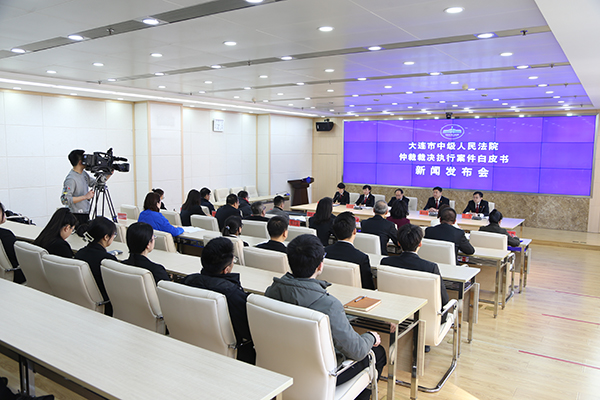 3月6日,遼寧省大連市中級(jí)人民法院召開仲裁裁決執(zhí)行案件白皮書新聞發(fā)布會(huì),對(duì)外發(fā)布《大連市中級(jí)人民法院仲裁裁決執(zhí)行案件白皮書(2020年-2023年)》(以下簡(jiǎn)稱《白皮書》)。大連中院黨組成員、副院長(zhǎng)韓科軍出席會(huì)議,大連仲裁委員會(huì)相關(guān)負(fù)責(zé)同志應(yīng)邀參會(huì),部分人大代表、政協(xié)委員、媒體代表親臨現(xiàn)場(chǎng),發(fā)布會(huì)通過大連中院微信視頻號(hào)全程直播。