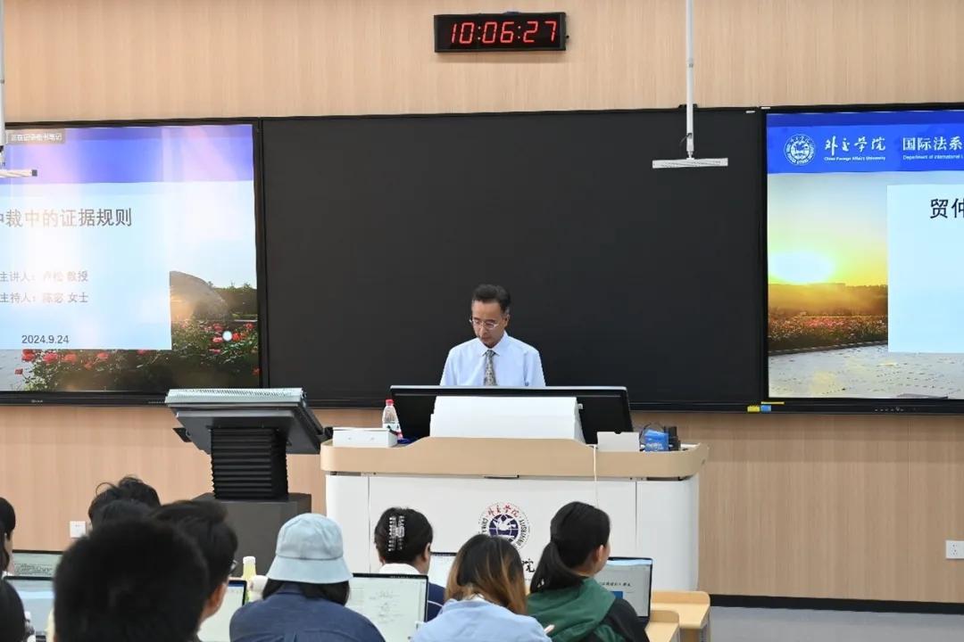 在講座中,主講人盧松教授,作為外交學(xué)院國際法系的杰出校友和貿(mào)仲《證據(jù)指引》的主要制訂者與修訂者,憑借其深厚的法學(xué)理論功底與多年的仲裁實務(wù)經(jīng)驗,為聽眾帶來了一場全面而深入的貿(mào)仲仲裁證據(jù)規(guī)則解析。盧教授首先強(qiáng)調(diào)了證據(jù)規(guī)則在仲裁過程中的核心地位,并結(jié)合具體案例,生動闡釋了證據(jù)如何影響仲裁結(jié)果的公正性與合理性。而后,盧松教授詳細(xì)介紹了貿(mào)仲仲裁中證據(jù)規(guī)則的制定背景、發(fā)展歷程及主要內(nèi)容,逐一解析了各項條款的具體含義,重點講解了舉證責(zé)任、證據(jù)形式、證據(jù)交換與質(zhì)證、證據(jù)保全等主要內(nèi)容,并通過實際案例展示了這些規(guī)則在仲裁實踐中的應(yīng)用場景與操作細(xì)節(jié)。