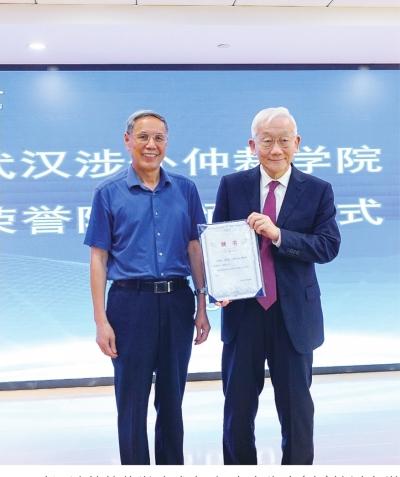 6月10日,武漢涉外仲裁學院掛牌成立,國際仲裁權(quán)威專家、香港國際仲裁中心名譽主席楊良宜先生接過聘書,成為名譽院長。