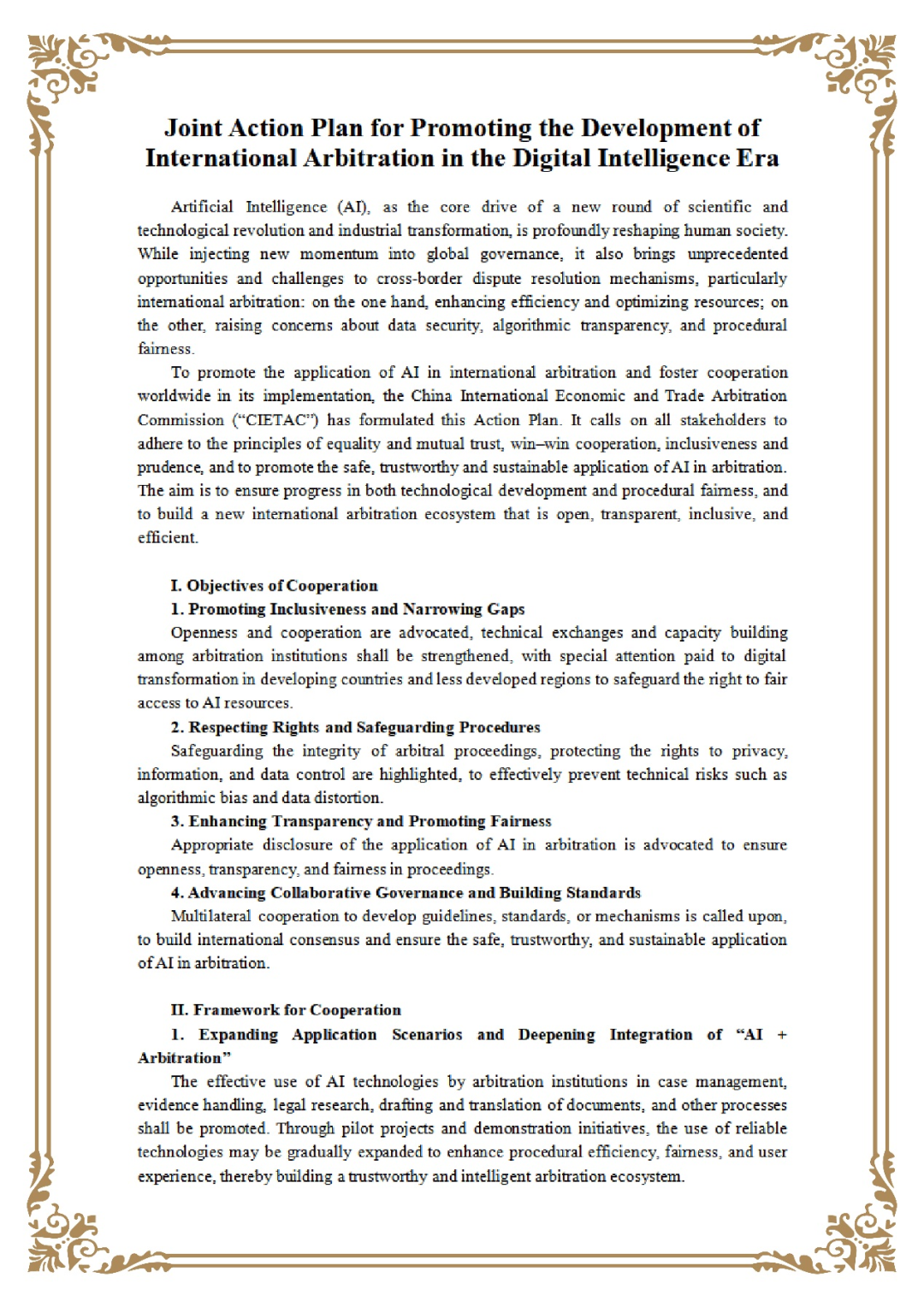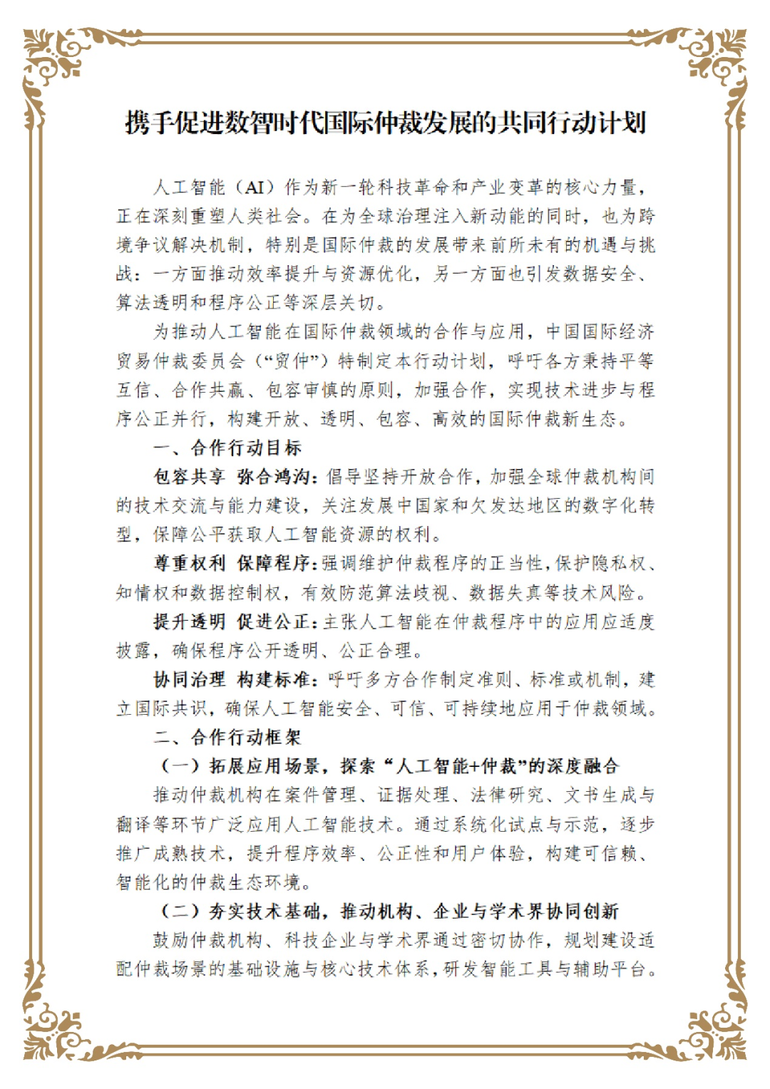 附:《攜手促進(jìn)數(shù)智時(shí)代國際仲裁發(fā)展的共同行動(dòng)計(jì)劃》中英文文本