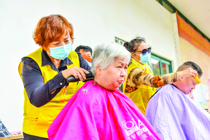 志愿者引導(dǎo)群眾報名參加公益培訓(xùn)。