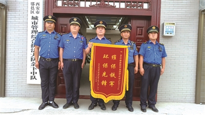 “我去蔣村街辦走親戚,在那里也發(fā)現(xiàn)了著裝整齊的城管隊(duì)員了!”8月,鄠邑區(qū)西街小學(xué)接孩子回家的家長(zhǎng)們興高采烈地議論著。與西街小學(xué)一墻之隔的區(qū)城管局,此刻黨旗飄揚(yáng),格外耀眼。