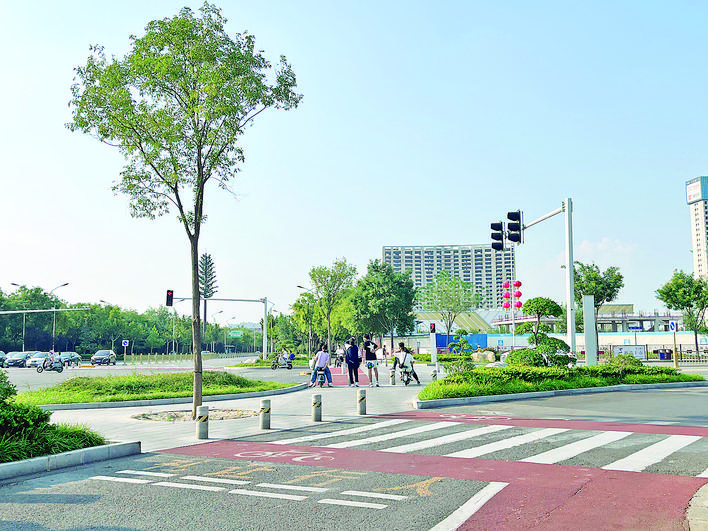 市民過馬路采取無障礙上島模式,給過馬路的行人和非機(jī)動車提供安全的等待區(qū)域,避免行人和非機(jī)動車與機(jī)動車發(fā)生沖突,保障廣大市民通過交叉口時的安全。