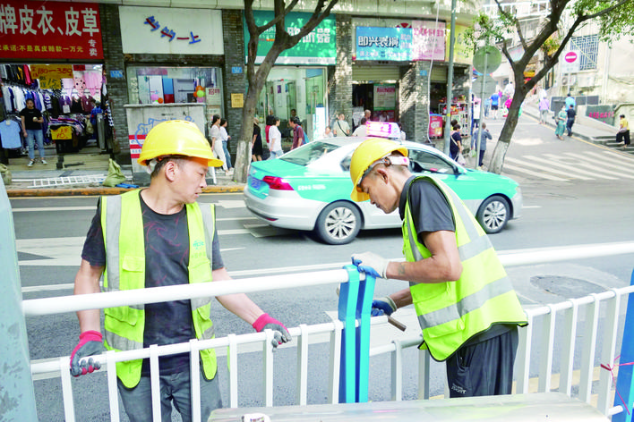 走在高筍塘商圈,市民們欣喜地發(fā)現(xiàn),新城路、孫家書房路、電報路都新安裝了護欄!藍色立柱、白色欄桿的新護欄結實又美觀,就像一道風景線。