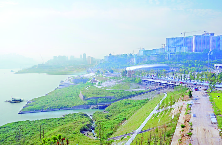 建設中的北濱公園中段,景觀錯落有致已現(xiàn)雛形。