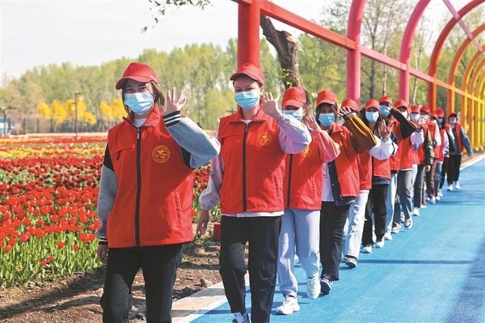 來自五家渠職業(yè)技術(shù)學(xué)校的志愿者在六師五家渠市青格達(dá)湖旅游風(fēng)景區(qū)參加崗前培訓(xùn)(資料圖片)。 兵團(tuán)日?qǐng)?bào)常駐記者 李華北 攝