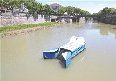 近期,臨浦鎮(zhèn)峙山河的河道內(nèi)也迎來(lái)了一位不同尋常的“保潔員”——智能無(wú)人保潔船。無(wú)人船往返于河面,通過(guò)船頭“雙臂”不斷將河面垃圾裝進(jìn)“肚子”里,很快河道垃圾便被清理干凈。