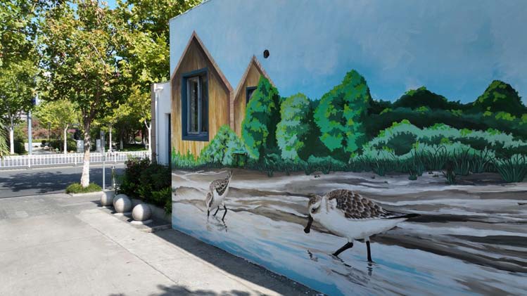 這邊公廁外立面粉刷一新,那邊墻面彩繪美輪美奐。在廣場路公廁西面墻上,一幅栩栩如生的勺嘴鷸墻面畫吸引不少市民駐足觀看。該墻面畫長9米、寬4.5米,含濕地、勺嘴鷸、森林、小木屋等東臺元素,描繪出一對“小勺子”在條子泥濕地自由覓食的生動景象,展現(xiàn)了人與自然和諧共生的美好圖景?!霸趯嶋H作畫過程中發(fā)現(xiàn)墻面有個窗戶,通過構(gòu)思把窗戶融合到畫面中的小木屋里去了。”繪畫老師朱進(jìn)華告訴記者,物畫融合也是這幅畫的亮點之一。
