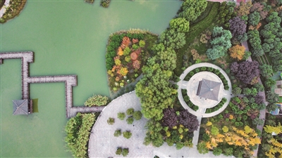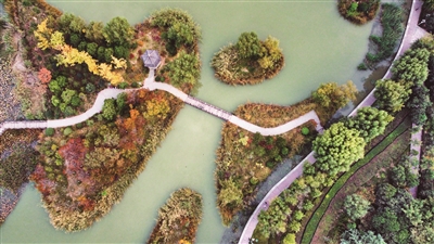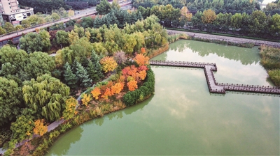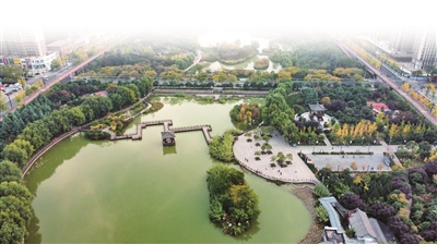 初冬時(shí)節(jié),興洛湖公園依舊景色如畫。