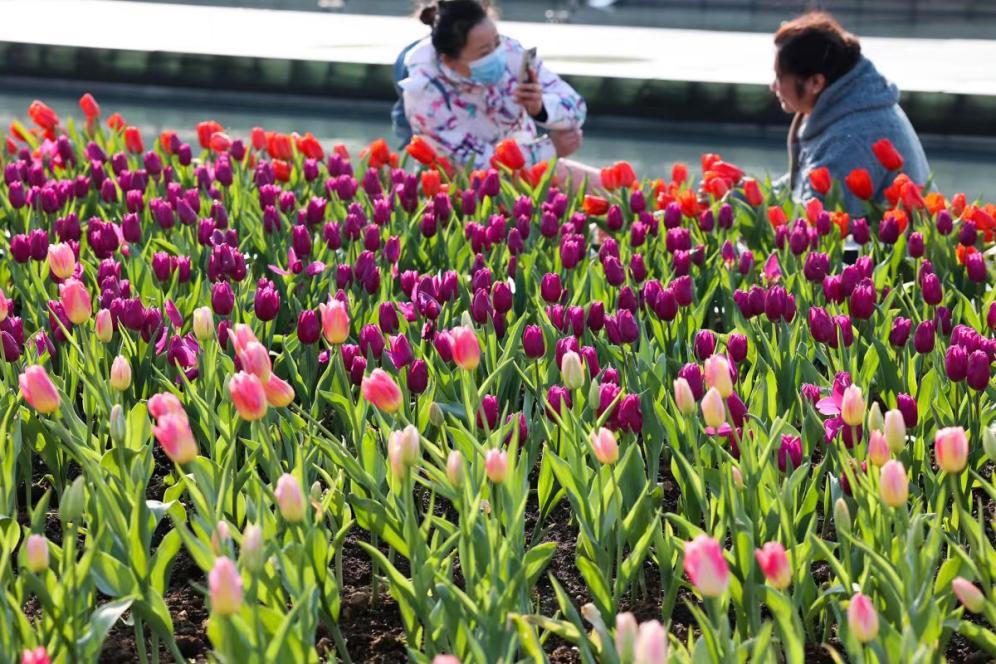 法治網(wǎng)訊(李佳靜 張黎哲)近日,位于浙江省寧波市鄞州區(qū)政府南側(cè)的鄞州區(qū)文化廣場內(nèi),各色郁金香凌寒綻放。為了營造新春喜慶氛圍,鄞州區(qū)綜合行政執(zhí)法局園林部門在該區(qū)域?qū)iT打造“郁金啟春”主題花展,以紅、橙、黃三色郁金香為主打,選用紫衣王子、紅燈籠、卡羅拉等9個品種共4萬余株郁金香,布展面積2500余平方米。