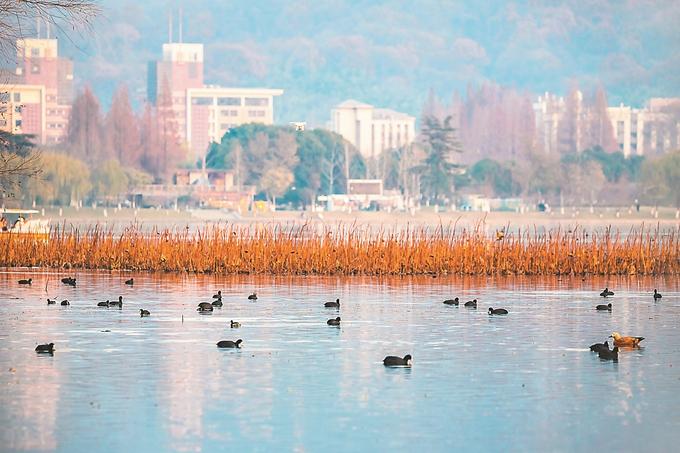 “西寧村濕地不少植被沒有過多人工維護(hù),蘆葦蕩夏綠秋黃,按自然規(guī)律生長更美。”西寧村工作人員張惠告訴記者,“但眼下變化肉眼可見,魚和飛鳥變多了?!苯陙恚愃撇僮髟谀暇┎簧贊竦剡M(jìn)行著。紅山森林動(dòng)物園北門湖,岸邊草坪上留出一個(gè)不打草的條帶,留出半個(gè)湖不打撈水草;玄武湖西北角出水口區(qū)域,留出3座不被人為干擾的小島;經(jīng)過23年“放養(yǎng)”,南京長江新濟(jì)洲國家濕地公園保育區(qū)幾乎恢復(fù)大自然最原始的樣貌……