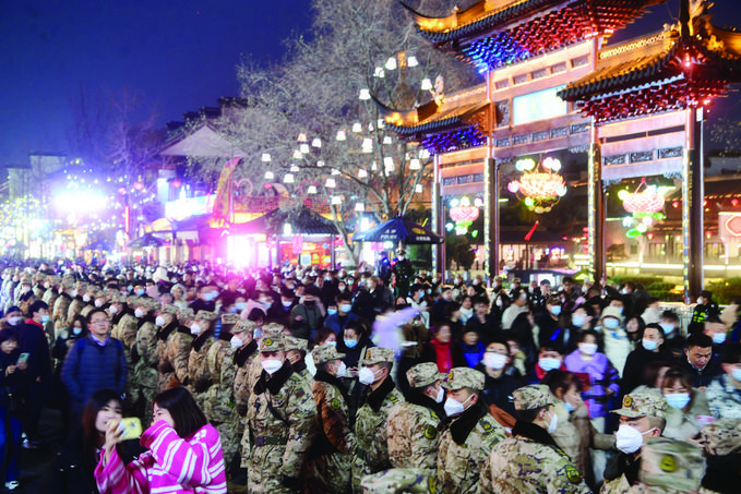 今年是南京秦淮燈會(huì)三年來首次恢復(fù)線下舉辦,從春節(jié)假期內(nèi)開始,夫子廟景區(qū)人流量就始終高漲。為了確保安全,除了夫子廟景區(qū)內(nèi)有大量武警、公安、消防等多部門投入大量力量,在景區(qū)周邊,還有大量城管執(zhí)法人員堅(jiān)守保障。