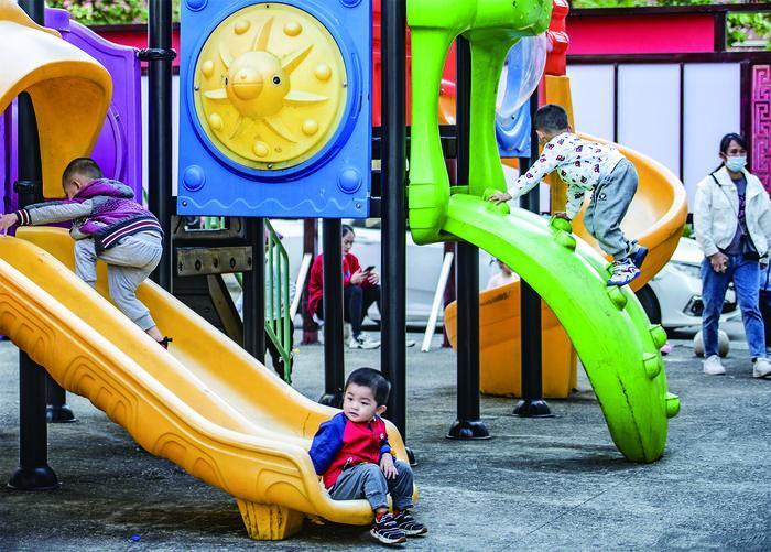 海南省瓊海市因地制宜利用城市社區(qū)空閑邊角地,建成多處“口袋公園”等休閑健身娛樂場所,有效拓展城市空間。圖為該市登仙嶺社區(qū)的小朋友在“口袋公園”玩耍。( 蒙鐘德 )