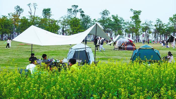 試點(diǎn)綠地開放共享市民享受露營樂趣