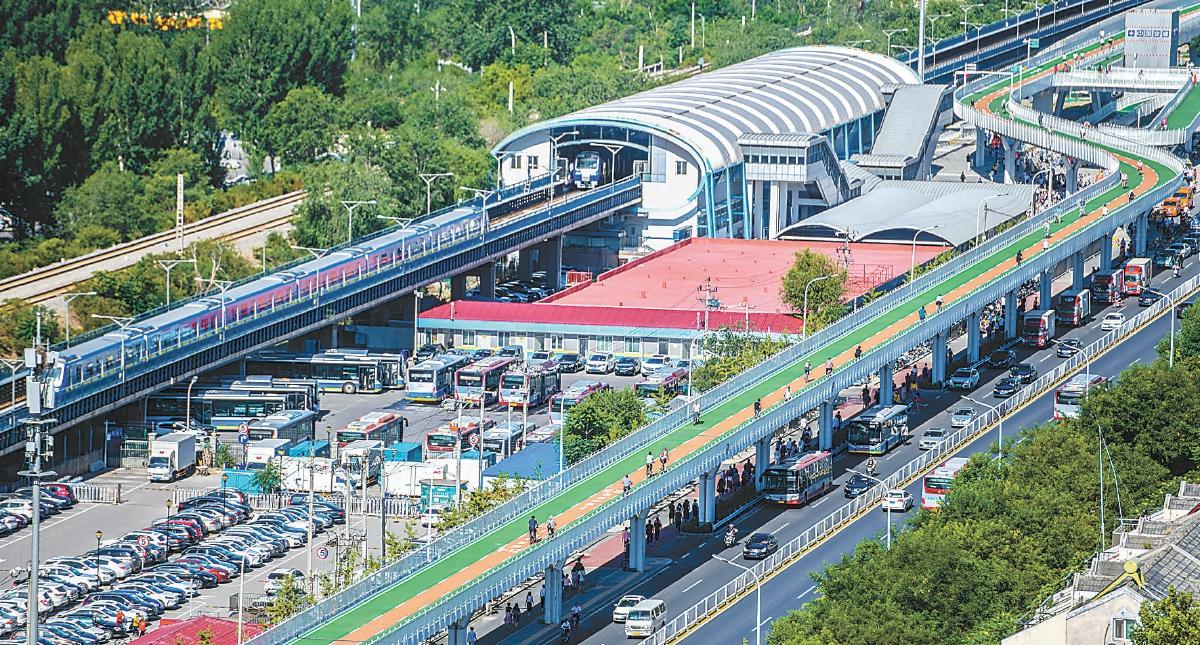 在地鐵13號(hào)線龍澤站北側(cè),自行車專用道蜿蜒向西。記者 潘之望 攝