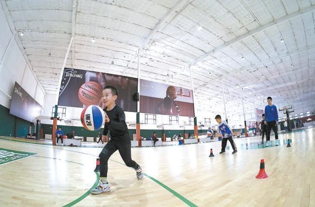 斯伯丁籃球館內(nèi),既有齊腰高的孩子在跟著教練學習如何運球,也有青年人在球場上你來我往激戰(zhàn)正酣。這里是北京市第一個由國際品牌“斯伯丁”冠名的球館,場館里有4個標準籃球場,不僅有看臺,還配置了高清攝像系統(tǒng)和環(huán)繞立體音效系統(tǒng),能夠即時直播、下載,還有專業(yè)的燈光照明。