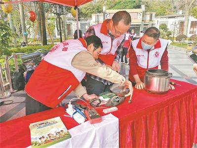 帶上萬能表、螺絲刀、“士巴拿”,拖著工具箱,召集“老”伙伴,出發(fā)!2023年3月15日,一個風和日麗的日子,粵暉家電義修隊在廣東省老干部大學的一片空地上擺開了“家當”,開始了他們的義修活動?,F(xiàn)場外圍,已經(jīng)有拿著待修電器的群眾排起了長隊。長長的工作臺上,各種小家電和工具一一鋪開,隊員們認真細致地檢查小家電的故障。在他們的熟練操作下,不管是一個壞掉的電熱水壺,還是一個“停擺”的電飯煲,一番“搗鼓”之下就又可以正常運轉(zhuǎn)了。除了需要更換零配件收取很少的成本費以外,隊員們?nèi)橇x務為街坊們維修。很少人知道,義修家電這件事,粵暉家電義修隊已經(jīng)連續(xù)干了十年。