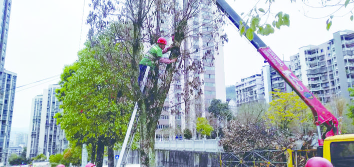 原來(lái),位于枇杷坪青龍西路的水韻天成小區(qū)一直有個(gè)隱患,就是小區(qū)公路兩旁的部分行道樹(shù)枯萎傾斜,刮風(fēng)下雨時(shí)有倒伏傷人、砸壞車(chē)輛的風(fēng)險(xiǎn),居民為此憂(yōu)心,于是向區(qū)城市管理局進(jìn)行反映。