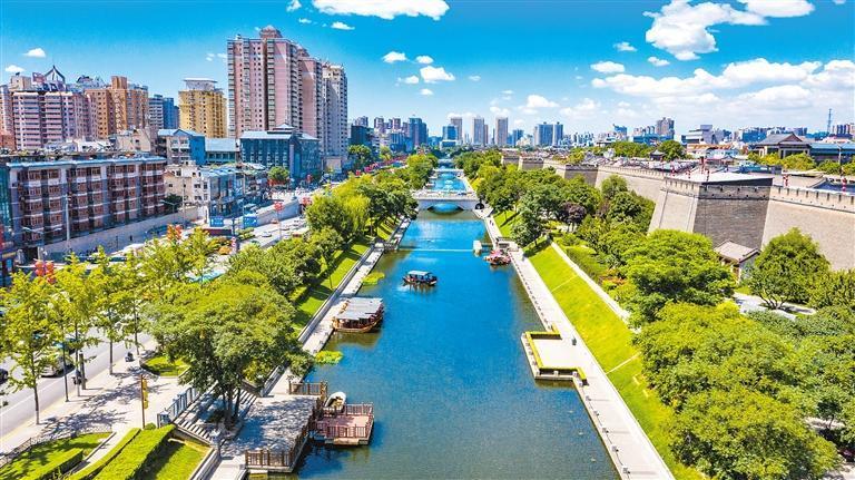 藍(lán)天白云下的西安城墻景區(qū)宛若畫卷(資料照片) 首席記者 李明 攝