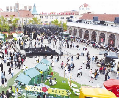 在青島歷史城區(qū)開展的上街里·逛春天旅游藝術(shù)季,吸引眾多年輕人前來打卡。王雷 攝