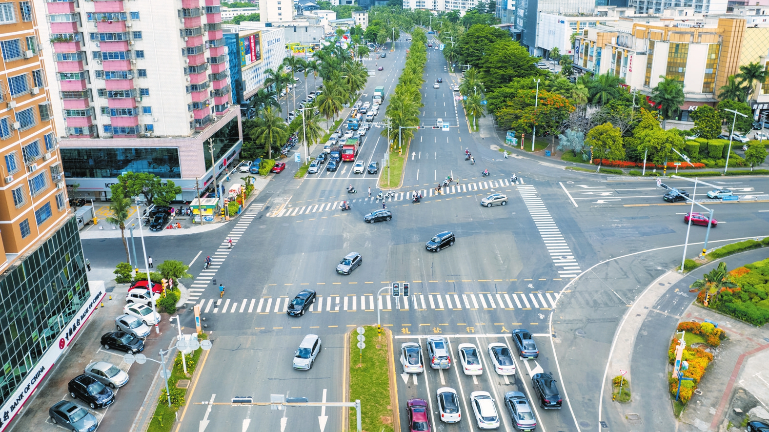 海口海港路與濱海大道交會(huì)路口的積水點(diǎn)完成改造后,即便遇到暴雨,該處的積水也會(huì)很快消退。記者 陳長(zhǎng)宇 攝