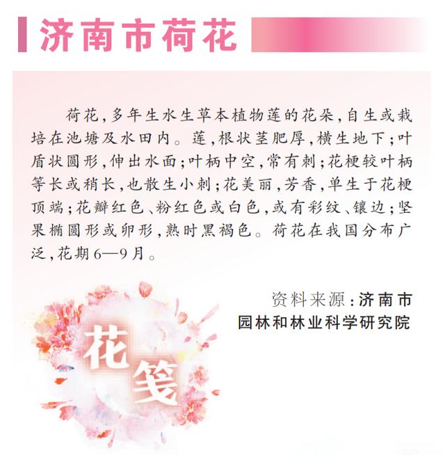 1986年,濟南市將荷花定為市花。荷花不僅以明艷色彩、淡淡香氣深入濟南人心中,更以高潔優(yōu)雅的品格,融入城市氣質(zhì),成為獨特的城市標(biāo)識。