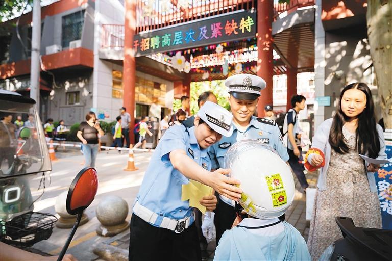7月4日,臨放暑假前,碑林交警東大街中隊副中隊長尚劍、楊瑞帶領(lǐng)網(wǎng)格民警陳曉渭、韓雪,輔警劉洋走進碑林區(qū)建國路小學(xué),為前來參加結(jié)業(yè)典禮的學(xué)生及家長贈送反光小紅花貼紙?!八湍阋欢湫〖t花”護學(xué)活動通過宣講、值守和獎勵機制形成閉環(huán),不僅大幅提升了“一盔一帶”的佩戴率,還通過一次次進校園宣講,有效增強了校園周邊的交通安全守法意識。