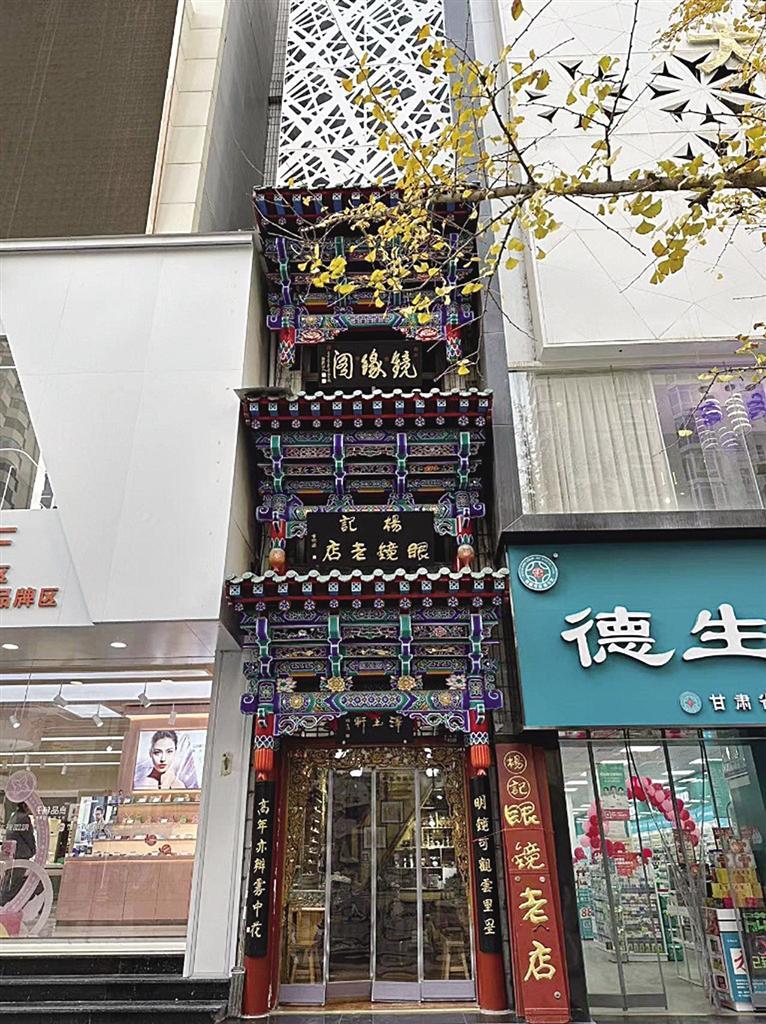 榫卯鑲嵌、手工木雕、精致彩繪、金箔貼邊,在張掖路步行街上,楊記眼鏡行的門(mén)樓招牌格外亮眼,雖然只有三四米寬的窄小門(mén)面,但店外從上而下的三塊古韻招牌彰顯出這家店的“不簡(jiǎn)單”。“最下面這塊‘澤玉軒’的招牌是我家祖輩楊澤玉開(kāi)創(chuàng)這家眼鏡行時(shí)留下的字號(hào)”,楊記眼鏡行是蘭州一家老字號(hào)的石頭眼鏡售賣(mài)和維修小店,光是制作修理石頭眼鏡這項(xiàng)手藝就已經(jīng)傳到了第五代,其店鋪在二十世紀(jì)八九十年代就獲得過(guò)商務(wù)部的“中華老字號(hào)”認(rèn)可。