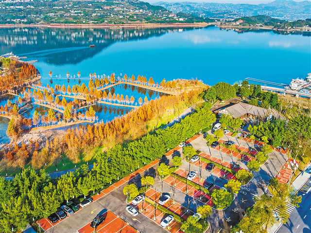 1月4日,開州區(qū)文峰街道,環(huán)境優(yōu)美又方便實(shí)用的濱湖停車場(chǎng)。