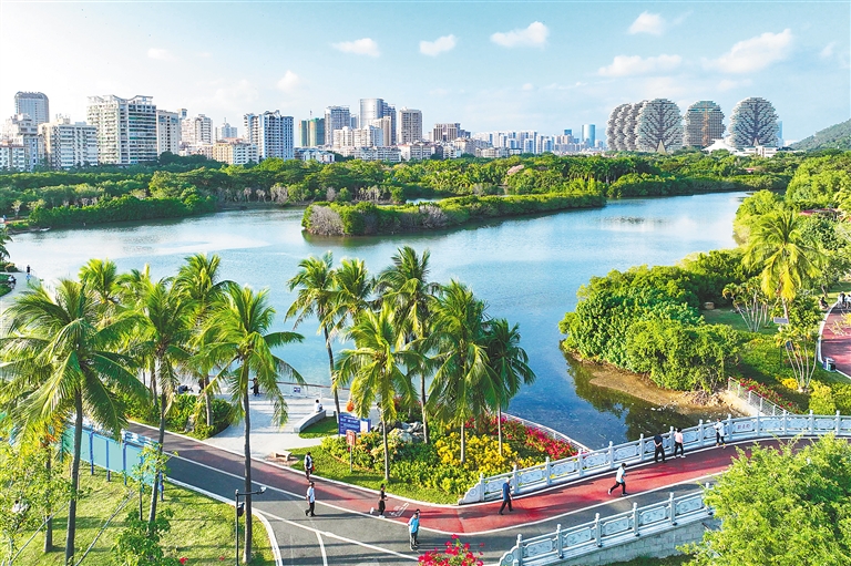 在三亞市白鷺公園里,市民游客漫步在“超級(jí)綠道”,呼吸新鮮的空氣,觀賞蔥郁的園林景觀,享受愜意生活。 記者 王程龍 攝