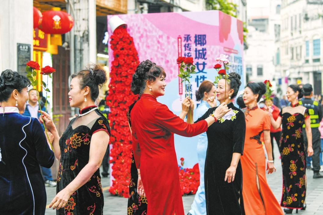 3月8日,為慶祝第114個“三八”國際勞動婦女節(jié),一場集傳統(tǒng)文化、時代風采與女性力量的活動——“承傳統(tǒng)文化·展時代風采”椰城女性歡樂派活動在騎樓老街舉行,老街以其獨特的南洋風情和長條式街道為女性們打造了一個天然的完美T臺。