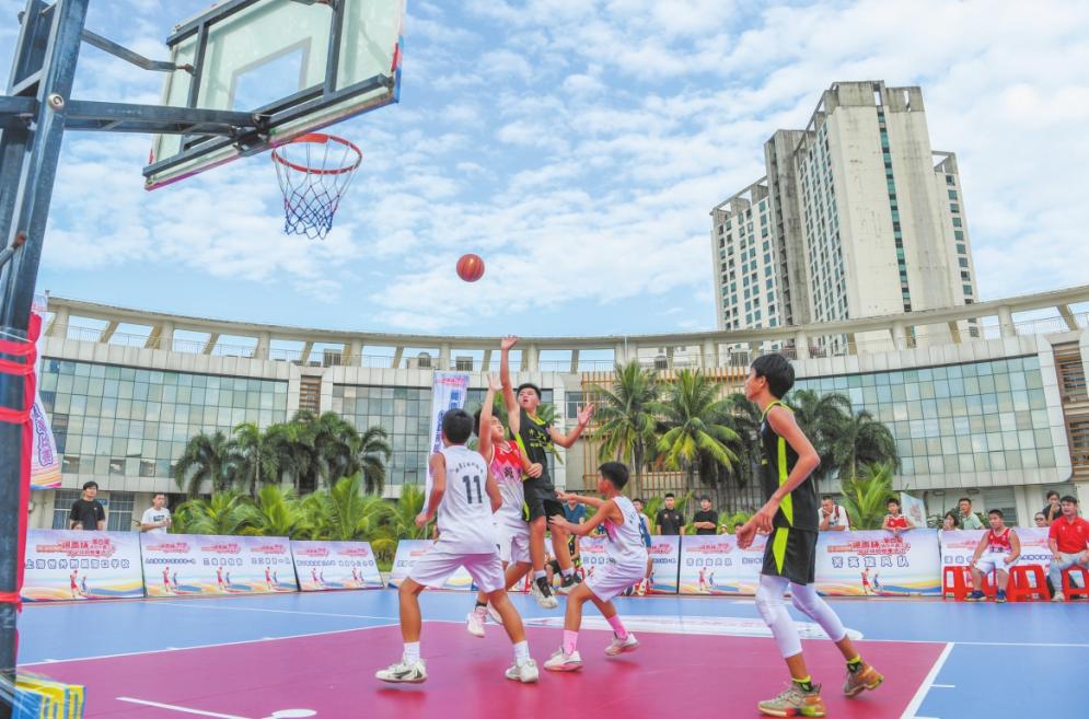 2023年10月29日,第四屆“椰青杯”青少年籃球比賽現(xiàn)場,參賽小隊員正在激烈地進行比賽對抗。