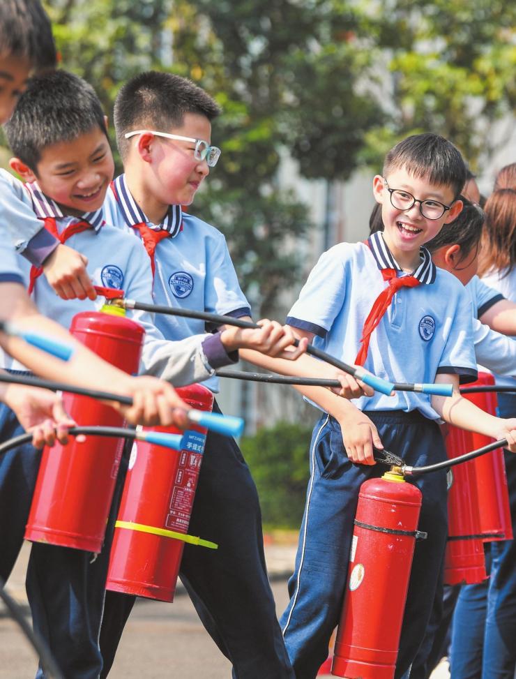 3月6日,學生們在海口市中小學生安全應急綜合演練基地參與消防安全應急演練。在學習使用滅火器環(huán)節(jié),孩子們認真學習,相互交流指正動作要領(lǐng)。