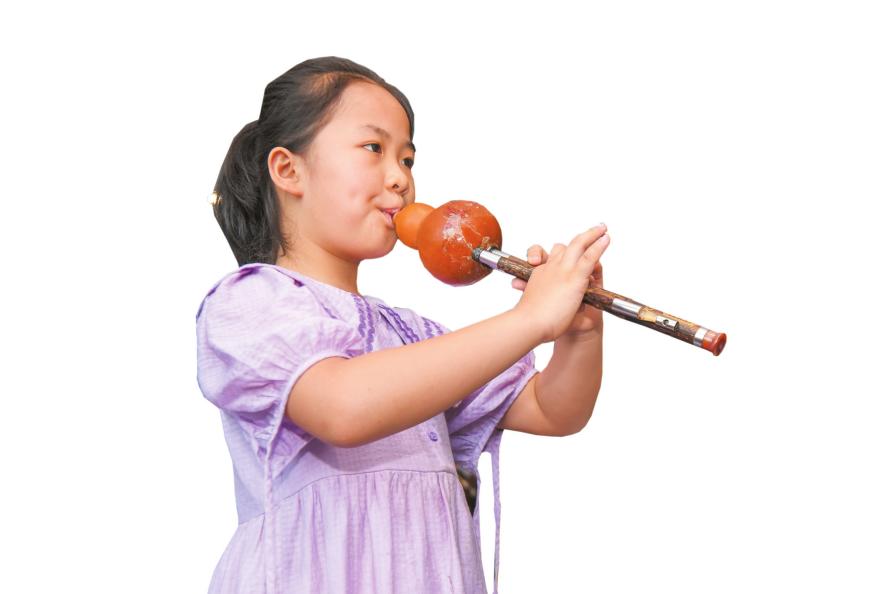 3月20日,小朋友正在龍華區(qū)文化館內(nèi)學習吹奏葫蘆絲,豐富課余生活。