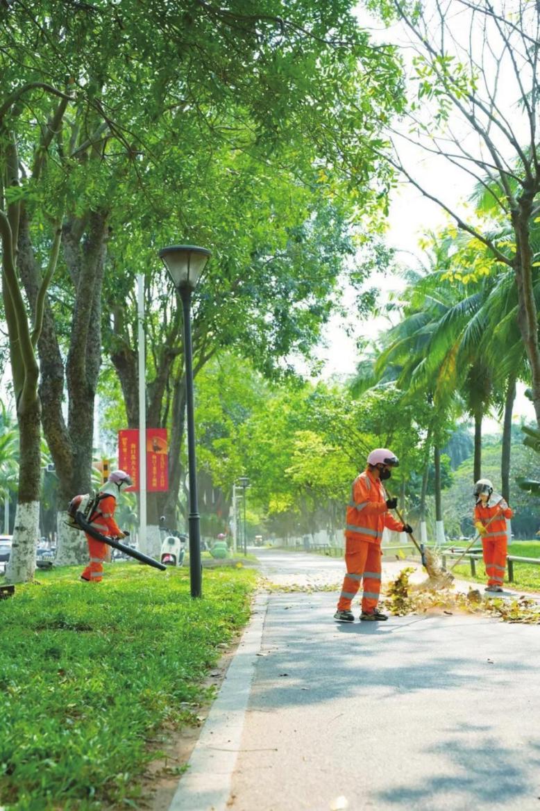 福龍馬海口公司清掃落葉有神器。福龍馬海口公司供圖