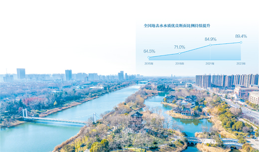 2023年,全國(guó)地表水水質(zhì)優(yōu)良斷面比例達(dá)到89.4%,比2012年提高27.8個(gè)百分點(diǎn)