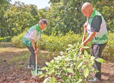 潘艷(左)在綠芽低碳森林參與公益植樹(shù)志愿服務(wù)活動(dòng)。