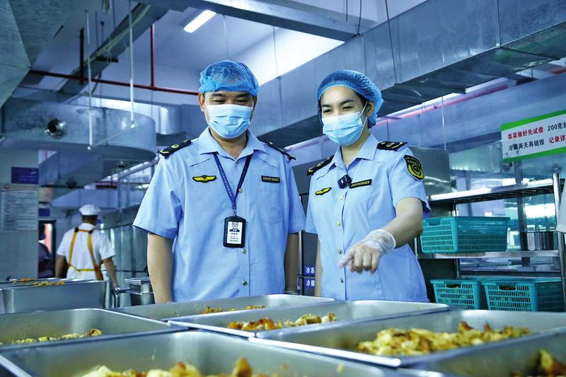 南寧市市場監(jiān)管局經開分局對轄區(qū)考點學校食堂和校園周邊食品經營單位開展食品安全專項監(jiān)督排查,加強食品安全監(jiān)管,保障中考考生飲食安全。檢查中,執(zhí)法人員重點查看學校食堂的食品貯存?zhèn)}庫、食品處理區(qū)、備餐間、餐具清洗消毒區(qū)和食堂從業(yè)人員健康體檢等情況,督促學校嚴格落實食品安全主體責任,確保食材原料采購的質量和營養(yǎng)健康,落實進貨查驗和索證索票制度。同時,執(zhí)法人員對校園周邊的食雜店、餐飲店等進行了檢查,為考生營造安全放心的餐飲消費環(huán)境。中考期間,經開分局執(zhí)法人員還進駐考點學校食堂進行全程監(jiān)督,全力保障中考供餐安全。