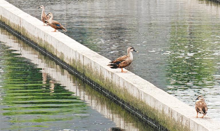良好的廠區(qū)環(huán)境吸引了周邊的野鴨來此“定居”