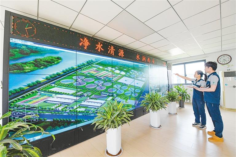 轄區(qū)內(nèi)每天的生活污水在這里經(jīng)過生物處理、沉淀、過濾、消毒等環(huán)節(jié),凈化為主要指標(biāo)達(dá)到地表水準(zhǔn)Ⅳ類標(biāo)準(zhǔn)的再生水,經(jīng)計(jì)量后進(jìn)入輸水管道,為灞河進(jìn)行生態(tài)補(bǔ)水。