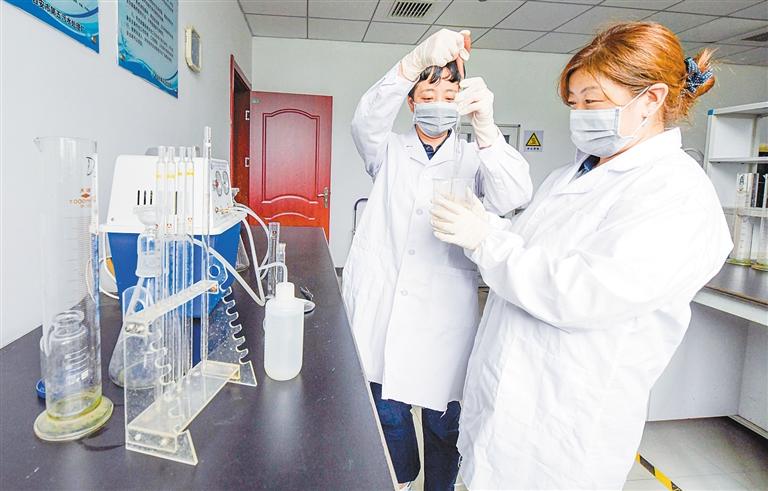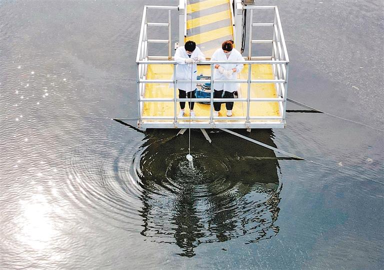 工作人員正在進(jìn)行水質(zhì)分析實(shí)驗(yàn)