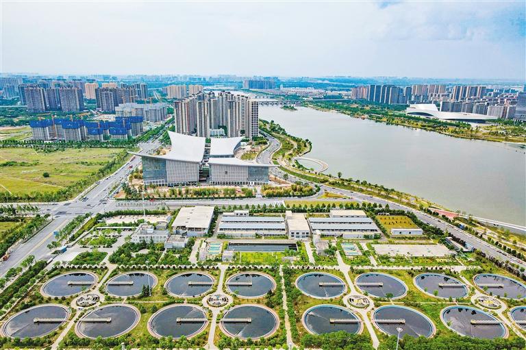 初夏時(shí)節(jié),碧波蕩漾的灞河畔,坐落著一座現(xiàn)代化污水處理廠——西安凈水處理有限責(zé)任公司第五再生水廠。廠內(nèi)綠植環(huán)繞,碧水漣漣,時(shí)常有周邊的野鴨來此“定居”。其主要接納和處理西安市東南郊、東郊和東北郊區(qū)域范圍內(nèi)的生活污水,設(shè)計(jì)處理規(guī)模40萬噸/日,總服務(wù)面積約53.3平方公里,服務(wù)人口約90萬人。
