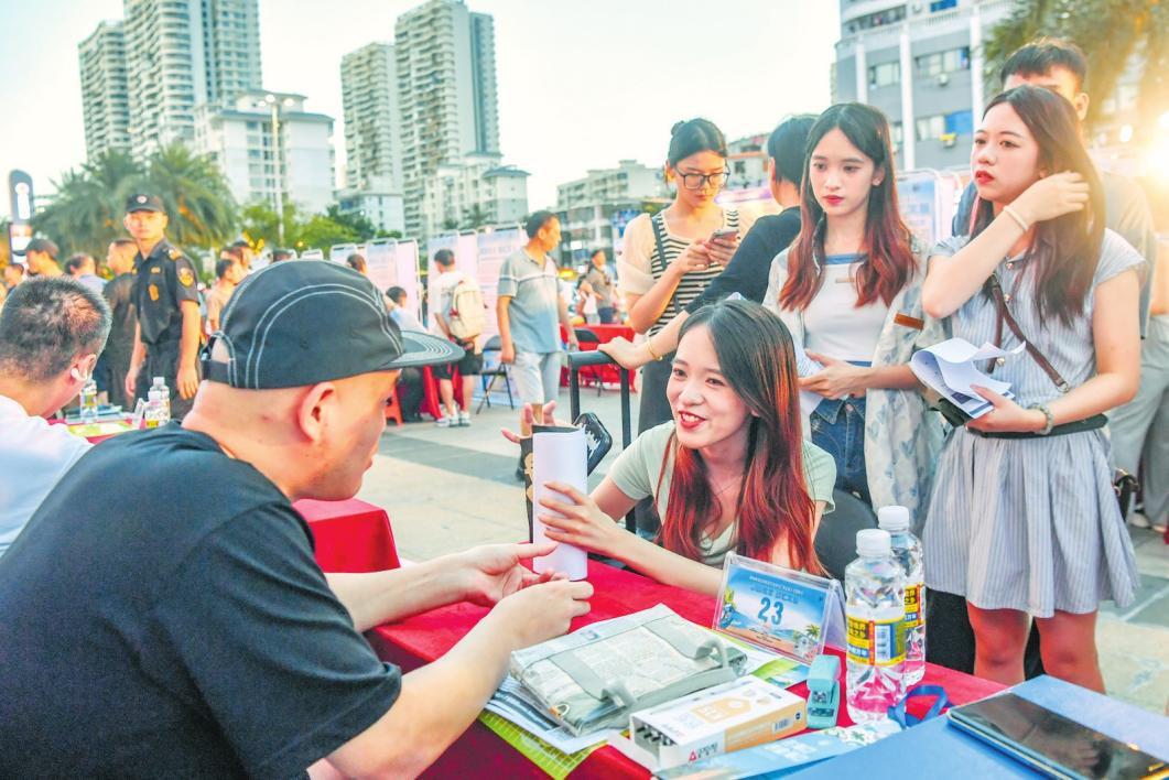 今年來,??谑懈骷壢松绮块T先后在高興里、海甸城、吾悅廣場、友誼陽光城等地舉辦招聘“夜市”,利用商圈夜間人流量大、氛圍輕松等特點,引導(dǎo)用工企業(yè)把崗位“擺出來”,助力求職人才把工作“逛到手”。