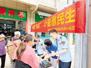 結(jié)合專項整治,在集貿(mào)市場、商超、趕集日、地鐵站出口等人流密集場所舉辦“手機(jī)變砝碼”系列活動,工作人員使用檢定合格的電子秤對群眾隨身攜帶的手機(jī)進(jìn)行稱重,加貼統(tǒng)一制式的重量標(biāo)簽,讓群眾手機(jī)秒變計量“砝碼”,并同步演示具體操作流程,為消費(fèi)者復(fù)稱商品重量,講述手機(jī)“變身”后在稱重時的使用方法;多渠道向廣大消費(fèi)者宣傳識別“鬼秤”的基本方法,普及電子計價秤計量知識,讓廣大消費(fèi)者掌握電子計價秤等日常計量器具的度量、單位換算知識,避免因知識盲點(diǎn)被商家誤導(dǎo)欺騙,活動中共“賦碼”手機(jī)560余部,接受群眾咨詢620余人次。